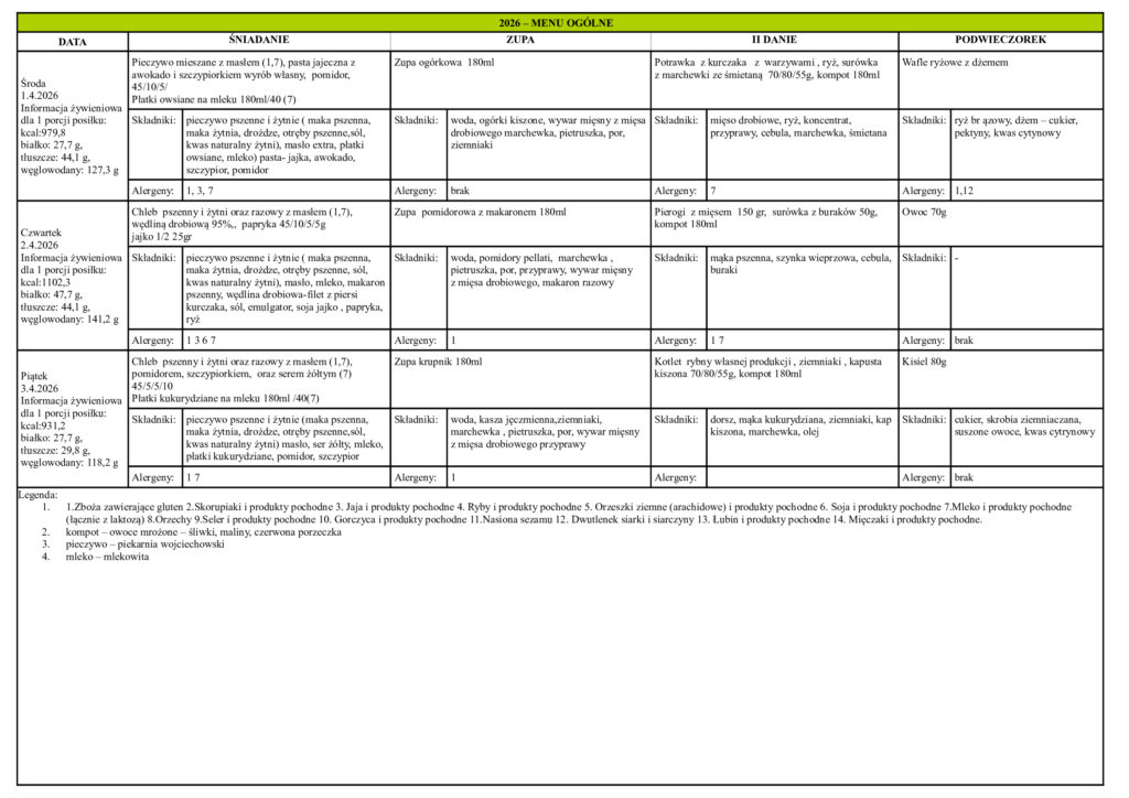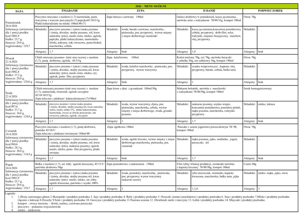 Ramowy rozkład dnia